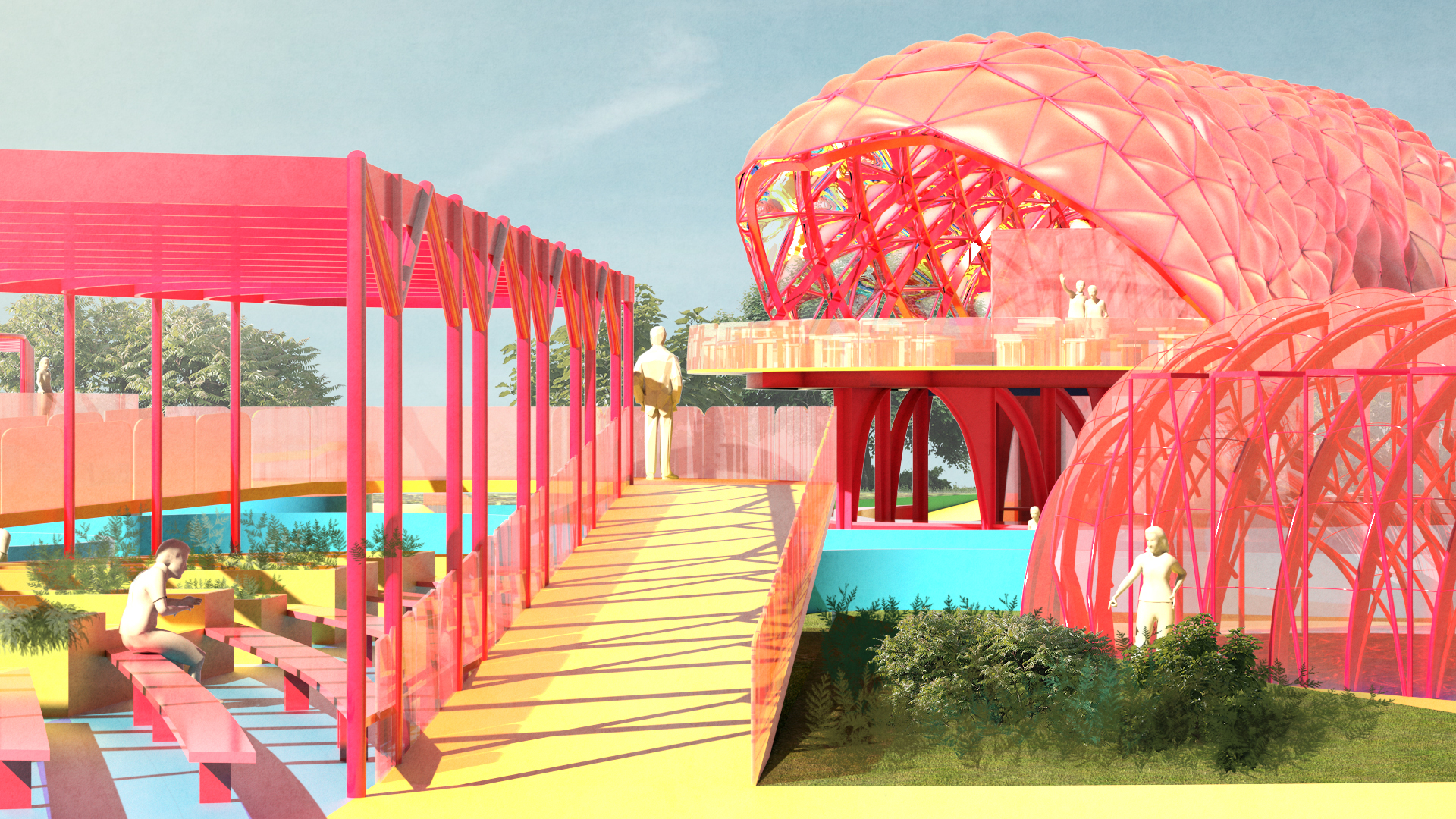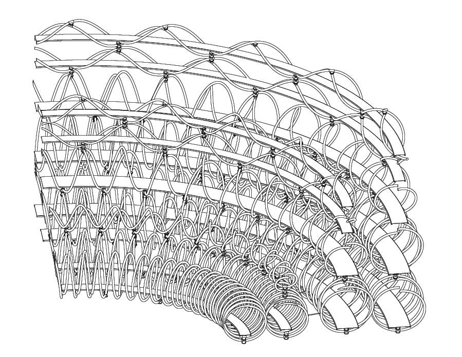 The canopy used solids of Sculpey and liquids of wax. Each piece is squeezed by jigs, which can allow them to mass-produce. Then the wax could connect each piece to make them connect as a whole. The support used lines of string and liquids of wax. A string is squeezed into each Sculpey piece, and they both dip in melted wax to absorb wax entirely, which could let them stand up on the stairs, underground, and lower ground to support itself and the canopy. And the reason why I used string is that it can give a direction for wax not only by gravity.