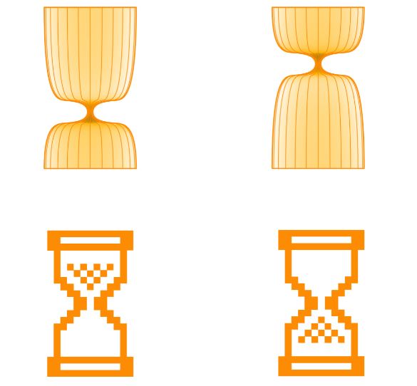 The chair’s profile is inspired by the shape of the sand timer as well as the loading sign on a computer screen. Both the sand timer and the chair have to be manipulated by human hands, which means people could take them up and rotate them down.